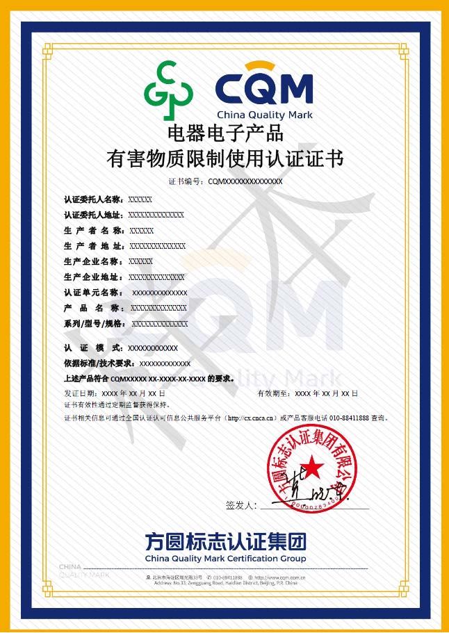 您現(xiàn)在的位置:首頁 > 產(chǎn)品認(rèn)證 > 電器電子產(chǎn)品有害物質(zhì)限制使用認(rèn)證